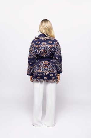This coat fits a little oversized but comes with a belt so can be tightened accordingly.
