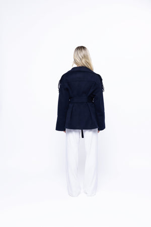 This coat fits a little oversized but comes with a belt so can be tightened accordingly.